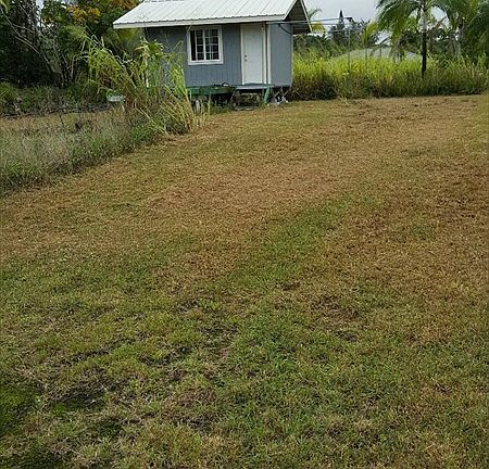 This wonderful lot is ready to build on. It has been cleared, leveled, ripped, planted with grass and has about two dozen mature palm trees. There is also a 256 SF accessory building which can be used for storage, workshop, studio or a construction shed. All you need to do is pull a permit and start building. This lot is easy walking distance to the shoreline and is near the end of a dead end street with very little traffic. Quiet, peaceful, tranquil and great neighbors. Hurry or you may miss out on this amazing opportunity! Seller will not survey or stake the lot. Buyer to pay for SSPP fee if desire to connect to the electrical grid. HPP charges $312 yearly road maintenance fees. Buyer to pay the $200 transfer fee. Be careful of steps to accessory building, do not go on deck.