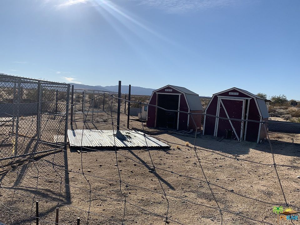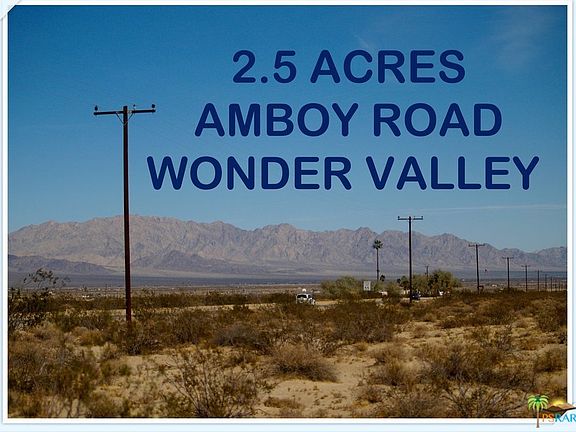 AMBOY ROAD, WONDER VALLEY $9,000.00- This 2.5 acre parcel has some potential. Just steps away from the Park on Amboy Rd. Located on the back of the property is a chain link structure which to appears to be an old corral with two sheds. Perfect for animal lovers bring your dogs, chickens, pigs, horse or ?. Along the back of the land is a dirt road that comes from the east making the back of parcel accessible and able to drive up to structure. Flat area to build on. Electric line runs along Amboy Rd. No water in area would need a well or tank. Amboy Rd. does have some commercial uses on it and could possibly be rezoned for other uses. Dimensions = 208 X 513 = 108,900 sq. ft. = 2.5 Acres. Nice scenic setting in Wonder Valley just outside of 29 Palms. Owner Will Carry with 20% down $1,800.00 a 1st Trust Deed of $7,200.00 payable 7% interest amortized over 5 year payable $142.57 + $15 loan service fee per month. Location on Amboy Road is just east of Steeg Rd. and West of Blower R