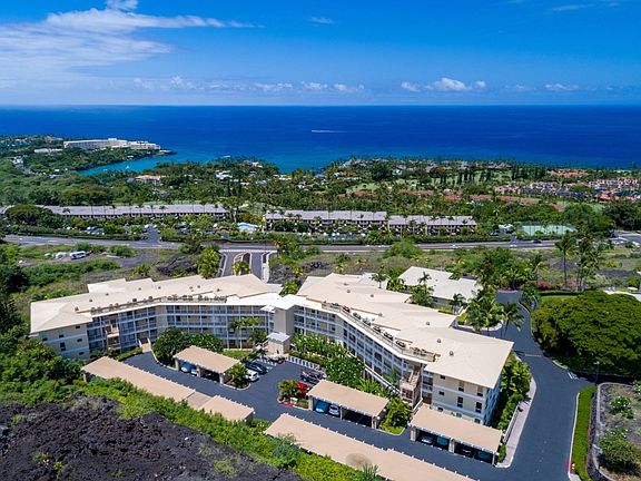 Looking for a top-floor end unit, in a quiet corner, and exceptional views of the Pacific ocean - this beautiful 2 bedroom, 2.5 bathroom condo is for you. Tranquil views of tree canopies and the sounds of tropical birds can be enjoyed while preparing meals in the well-designed galley-style kitchen, entertaining in the dining area and on the secluded ocean view lanai. Pacific ocean and Hualalai mountain breezes offer great airflow to keep the home at comfortable temperatures. The large main bedroom suite features two walk-in closets and a mesmerizing ocean view toward Keauhou Bay. The main bedroom located on the ocean side and the guest bedroom on the mountain side provide plenty of privacy. The community elevator allows for easy access to the covered carport area. Sold furnished - just move in! To take a 3D tour, COPY/PASTE: https://my.matterport.com/show/?m=skrLDDzN2Nf&mls=1 Kaulana at Kona is a small gated community (44 for units total) located in the prestigious Keauhou Resort area. Conveniently located near the Keauhou Shopping Center, Keauhou Bay, Kahalu'u Beach Park, and the Kona Country Club Golf Course. The 15,000 sq. ft. clubhouse offers you a one of a kind "Hawaiian resort lifestyle": *Ocean view lanais with tables and chairs *Heated salt-water pool and spa looking out over the ocean *2 tennis courts *Exercise room with A/C *Entertainment room *T.V. room, library, game room with pool table and table tennis *Meeting room, community kitchen with tables and chairs Monthly maintenance fee of $1,042.99 includes: on-site manager, gated entry, elevator, water, sewer, trash collection, cable TV and internet connection package, landscaping maintenance, exterior maintenance of the building, master insurance policy on the project, heated pool & spa, tennis courts and clubhouse. 30-day minimum rental. 55+ community with an 80% 55+ owner occupancy ratio. Pets are allowed, rules apply and are enforced.