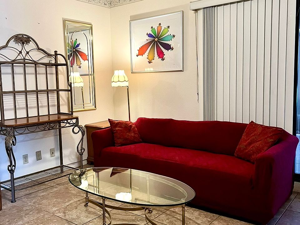 Quiet, private, spacious, furnished studio with bedroom and kitchenette. Enclosed patio. private entrance and bathroom. Fridge and microwave. Safe neighborhood. Fenced yard & remote gate opener. Big rig friendly. Close to interstate 15 and hospitals. I'm looking for 1 (one) quiet mature person with their own transportation. Deposit $300 all utilities paid and Wifi available. No pets. No smoking on property. 500 sqft