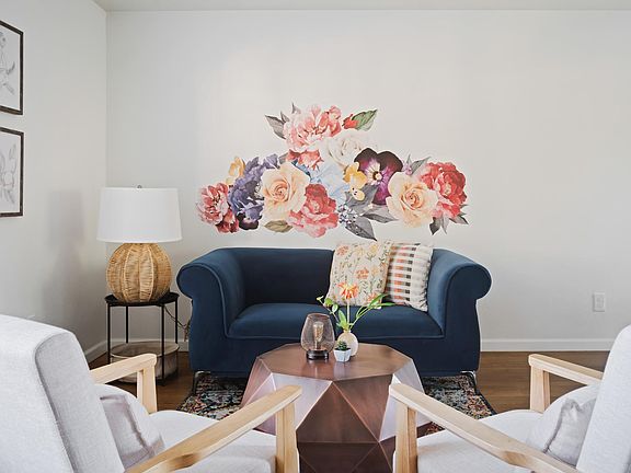 Enjoy your meals at the dining table, which seats 8 to 10 people, or head outside for an alfresco meal in the lovely backyard. Once you've eaten, relax in the elegant lounge next to the dining area while you make plans for your next adventure in Colorado. A lovely floral mural and comfy couch and armchairs make this a nice place to hang out.