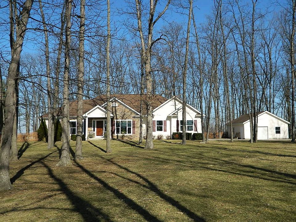 Absolutely stunning custom built ranch situated on a lovely wooded lot. Desirable open floor plan. Gourmet kitchen with abundant cabinetry, island, and beautiful granite countertops. Quality stainless appliance package stays in place. Handsome solid Brazilian Cherry wood floors, as well as imported porcelain tile with the slate look in the great room. Prepare to be impressed. No detail has been overlooked here. The Regency fireplace is controlled remotely for several levels of heat settings. Also remotely controlled are the audio visual and sound system for your convenience. Owners suite boasts an air jet spa tub that is self drying and separate glass encased shower. Useful large laundry/mud room just off the garage entrance and the kitchen. Ample closets and storage throughout. Absolutely stunning custom built ranch situated on a lovely wooded lot. Desirable open floor plan. Gourmet kitchen with abundant cabinetry, island, and beautiful granite countertops. Quality stainless appliance package stays in place. Handsome solid Brazilian Cherry wood floors, as well as imported porcelain tile with the slate look in the great room. Prepare to be impressed. No detail has been overlooked here. The Regency fireplace is controlled remotely for several levels of heat settings. Also remotely controlled are the audio visual and sound system for your convenience. Owners suite boasts an air jet spa tub that is self drying and separate glass encased shower. Useful large laundry/mud room just off the garage entrance and the kitchen. Ample closets and storage throughout. Oversized windows in every room look out upon nature.... this is an outdoor lovers paradise. Relax while you watch the wildlife and sun rise and set each day from your own retreat! Three car attached finished garage and two car detached garage with door entry and workspace both on a concrete apron. The layout of the full basement is completely fitting to add additional living space as well as preserve storage. Advanced geothermal heating system. Almost commercial grade electrical structure. Eighty gallon hot water tank. High capacity water softener. Reverse osmosis system. Monitored, owned security system including smoke detection. Thirty year dimensional roof. This home is located on a dead end street, with virtually no drive by traffic. Rear door to the brick paver patio. Pretty gazebo and also an outdoor fire ring area in place. You will love coming home every day. Welcome Home!