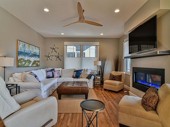 You will arrive at our mountainside neighborhood and park either inside our 2-car garage or in the driveway. Our welcoming foyer provides comfortable seating for removing your shoes and a coat closet for storing your belongings. Take the stairs to the second floor where our inviting, open-concept living area awaits. The dining area features a modern light fixture and a custom, local and handmade dining table that seats up to 8. The adjoining chef's kitchen is full of light and boasts beautiful, counter to ceiling tile, granite countertops, high-end stainless appliances, including a gas range, and every dining and cooking utensil you could want or need. And best of all, there are spectacular mountain views from the kitchen sink.
