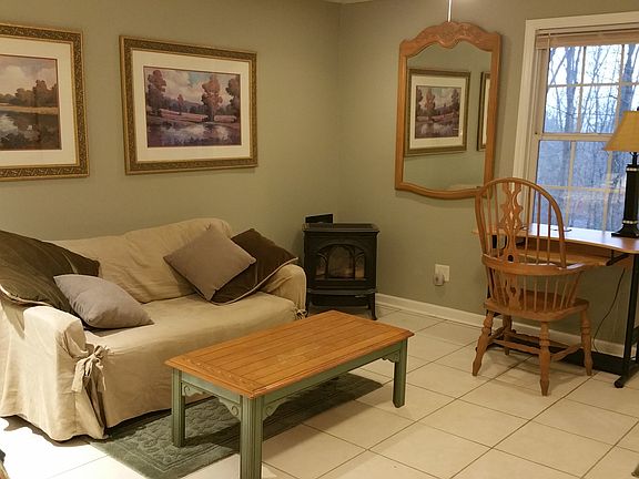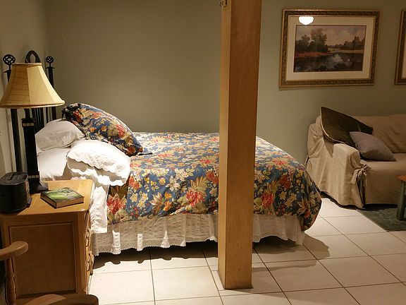 Private entranceFurnished basement studio apartmentDeck overlooking the woods