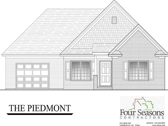 The Piedmont Floor Plan features vaulted ceilings in the large open great room.. Dining area is open to kitchen and features granite counters, and stainless steel appliances. Large laundry room. Master suite includes master bath with walk-in shower and walk-in closet. 1 car garage with pull down attic. Screened porch and outside storage closet. All brick construction and 1 year limited builder warranty. Lawn Maintenance included in HOA dues. Enjoy the ease of owning a new construction home and the slower pace of a small town!