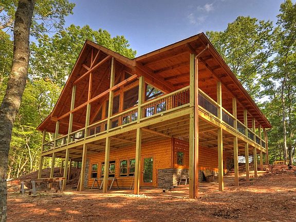 Stunning New Construction Cabin in Aska Adventure Area... close to historic downtown, USFS trails & Toccoa River...craftsman quality with rustic flair & distinct detail...adorned by mountains...3 bedroom/3 bath style cabin is perched on large wooded tract with towering hardwoods & lush, gentle landscape, lavish living area boasts sky high ceilings & "wall of glass," massive stone fireplace in great room, unique & warm industrial finishes, plentiful windows, custom cabinetry w/granite counters, tile showers & baths, upscale fixtures & extras throughout...dual hvac system, finished terrace level w/wet bar, den/rec room with fireplace & guest qtrs, oversize "party porch" features fireplace & relaxing views, multi levels of porches & decks are great for outdoor entertaining, easy access with plenty of parking, fabulous firepit, surplus storage, gated upscale rustic community w/ultimate privacy, convenient yet tucked away! Hurry & customize finishes...A Step Above!