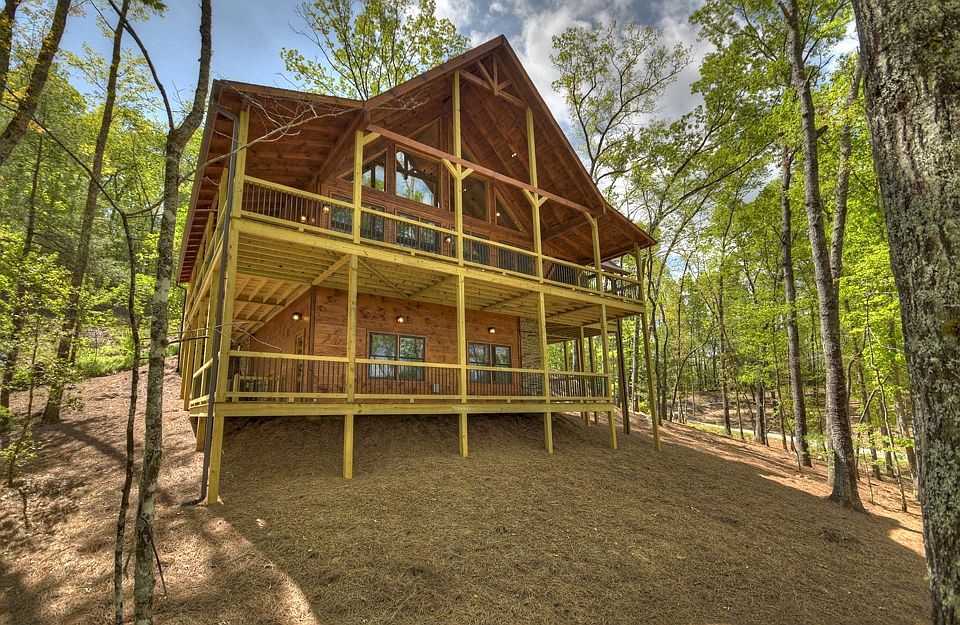 Stunning New Construction Cabin in gated Aska Adventure Area community with lovely long range mountain views... close to historic downtown, USFS trails & Toccoa River...craftsman quality with rustic flair & distinct detail with unmatched mountain view..3 bedroom/3 bath + large loft cabin is perched on generous wooded tract with towering hardwoods & gentle terrain, lavish living area boasts sky high ceilings & wall of glass, massive stone fireplace in great room, unique & warm industrial and reclaimed wood finishes, plentiful windows, custom cabinetry w/granite counters, tile showers & baths, upscale fixtures & extras throughout...dual hvac system, finished terrace level w/wet bar, den/rec room with fireplace & guest qtrs, oversize party porch features fireplace & relaxing views, multi levels of porches & decks are great for outdoor entertaining, easy access with plenty of parking, surplus storage, upscale rustic development w/ultimate privacy, convenient yet tucked away! Paved access...tastefully staged furniture is optional at additional price for turn key option...A Step Above!