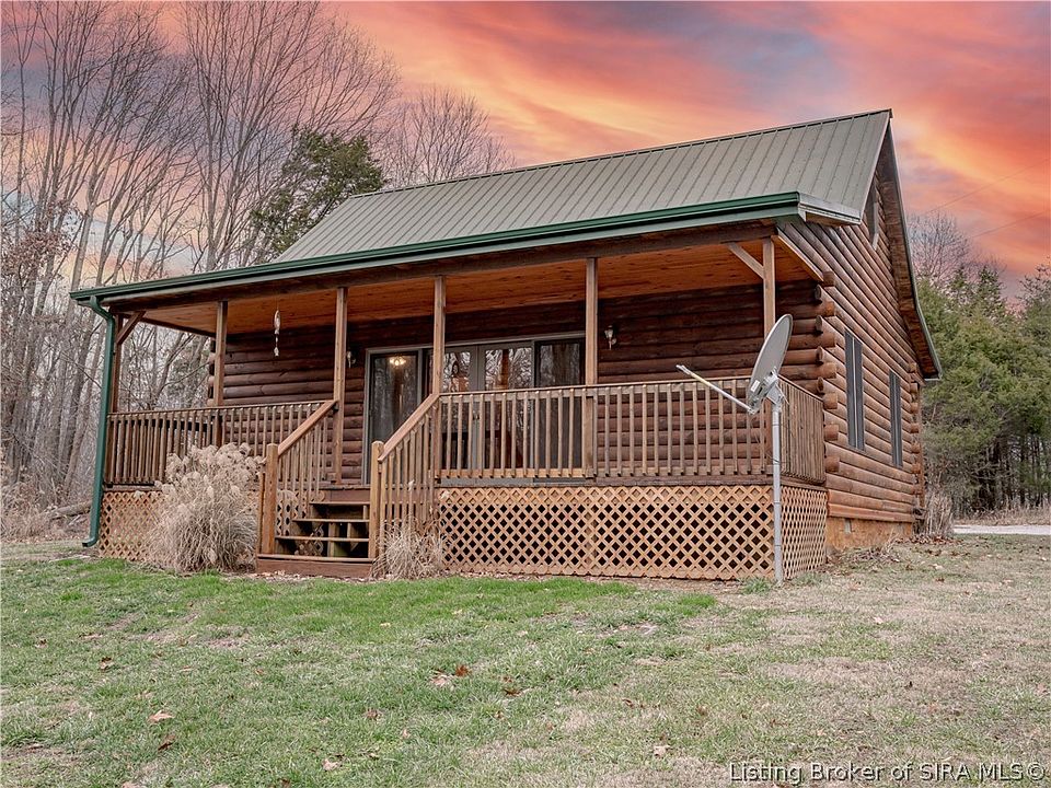 Need to get away from it all? Find peace of mind tucked away in nature in this immaculate pine log home situated on 3 +/- completely wooded acres (deer and wildlife plentiful!!) only a few miles south of Corydon! Built in 2000, this one-owner, extremely well-kept and maintained home makes the perfect weekend getaway or starter/small family home! Interior features: 1.5 stories, 960 SF living area (720-main & 240-second floor), 2BR/1BA, traditional 2x6 wall construction w/log siding, open floor plan, tall ceilings, all-natural wood interior, lots of natural light, kitchen island, appliances, & hardwood floors throughout. Exterior features: covered front porch (8 x 30) & covered rear porch (8 x 30), raised crawl space, metal roof, & gravel drive. Mechanicals: electric heat pump, central A/C; electric water heater; public water; septic system. Don’t miss your opportunity! Home is ready to move into with immediate possession available at closing! AUCTION ends February 2 at 6 pm. Bid now at https://bid.beckortauctions.com/auctions/catalog/id/34643/