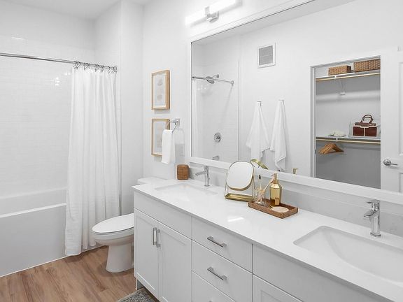 Step outside and you'll find a pool with cabanas, a co-working lounge with private spots to focus, and a dog park. If you're into staying active, there are pickleball and volleyball courts right on site.