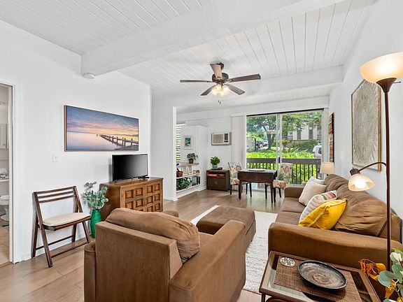 This one bed one bath, bottom floor condo is a corner unit being sold with all the furnishings. Updated kitchen features a tile backsplash, new cabinets, new refrigerator, and new microwave. Bathroom has a full sized stacked washer & dryer. Tile and wood laminate flooring throughout, and a spacious bedroom.
