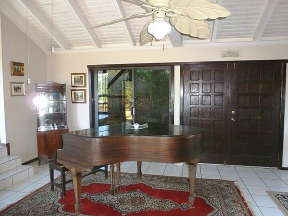 NORTHSIDE. Lovely and spacious 3 bedroom, 3 bath home overlooking Mahogany Run Golf course. Large open living room, a separate dining room and 2 of the bedrooms open up to the swimming pool and deck. A gourmet kitchen features another dining area that opens to the pool deck, too. Lots of storage and a separate laundry room on the first level. Currently being used as a vacation rental.