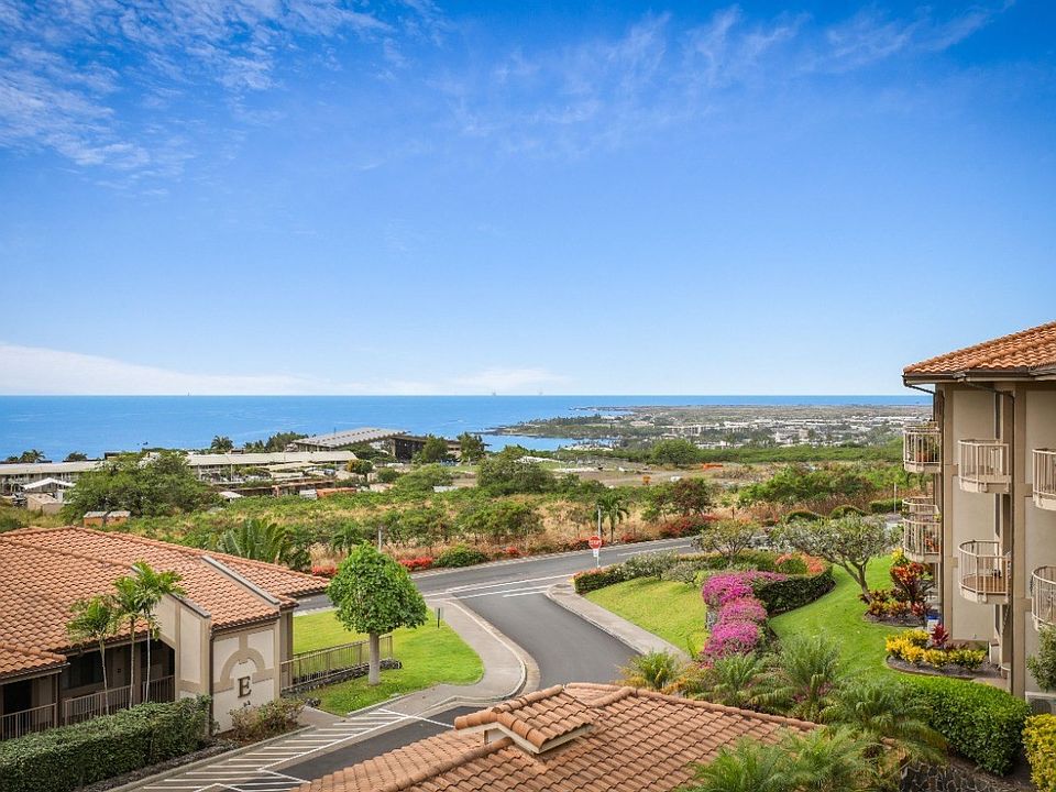 Rarely Available, 3-bedroom, 2-bath Stunning Top Floor Unit with Panoramic 180-degree Ocean Views. Sold Fully Turn-key Furnished in Designer Décor. Vaulted Ceilings, Granite Counters, Custom Cabinets, and Tile Flooring. Zone Air-conditioning, Instant Hot Water, and Storage Galore! Hualalai Village sits on the Hillside overlooking Kailua Bay. It's Quality Construction includes Steel Framing, Tile Roof, Anodized Aluminum Railings, Copper Gutters, Solid Doors, Dual-Pane Anderson Windows, Insulated (R19) Interior and Exterior walls, Soundproofing, and more. This unit has the added features of Custom Maple Rope Cabinets and Granite Counters throughout, Ceramic Tile Flooring, and Plush Carpet. A Covered Oceanview Lanai runs the length of the Primary Bedroom Suite and Livingroom. The Kitchen is separated by Raised-top Bar Seating. The Primary Bedroom opens onto the Lanai through 8-ft. Sliding Glass Doors and features a Walk-in Closet and Private Bath with Tub/Shower combination. The Two Spacious Guest Bedrooms have Mountain Views of Hualalai. They have Mirrored Closet Doors and share a Guest Bath with Tub/Shower Combination. The unit has Two parking spaces- one is a Covered Carport with Locking Storage. In addition, there is a Storage Closet on either end of the Oceanview Lanai and Interior Storage as well! Hualalai Village is located less than a mile from Kailua-Kona Town. Close to Restaurants, Shopping, Resort Hotels, Beaches, and the Pier. To the south, within 4 miles, is the Keauhou Shopping Center with additional Dining, Grocery, Retail and Drug Stores, Banking, Post Office, Theatres, and a Weekly Farmer's Market. The Keauhou Resort Area includes Kona Country Club's Oceanfront Golf Course and Driving Range and Keauhou Bay's Swimming, Paddling, Snorkeling, and Fishing adventures. 30-day minimum rental. No pets. Low Monthly dues of $597.18. Parking spots 303. Big Views, Spacious Floorplan, Conveniently located Close to Everything!