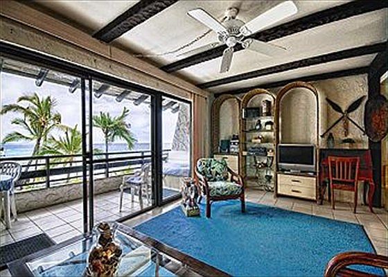 Near-oceanfront, Top-floor unit with Direct Ocean View. Located at the Front of this Popular Oceanfront Complex. Beach Area, Pool, and Pavilion are only Steps away. Large Tiled Lanai overlooks Pool Area to Ocean beyond. Spacious Rooms, Tiled through-out, Central Air-conditioning, and Great Ocean View!! Complex has Two Pools, Sandy Beach Area, Pavilion with Kitchen & BBQs, Community Laundry, and a Convenience Store only Steps Away. Tropical Landscaping, Elevators, and Resident Manager on-site. Monthly dues cover Central Air-conditioning, Hot Water, Basic Cable, Federal Flood Insurance, Master Building Insurance, Water, Trash Collection, Grounds and Pool Maintenance, Association Management, and Resident Manager. Electric is owner's responsibility. This Popular Vacation Rental is conveniently located mid-way between Kailua-Kona and Keauhou, close to Restaurants, Shopping, and Beaches.