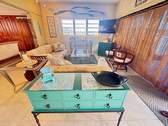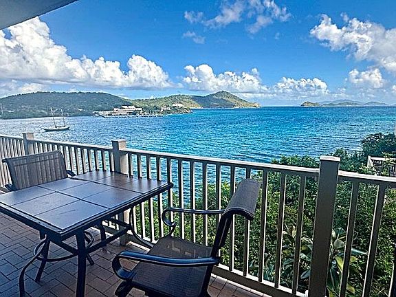 WATERFRONT! Sirens Song Villa is a beautifully designed, light filled one bedroom condo, perfect for either year round living or as a vacation rental. You'll find a kitchen with full size appliances including dishwasher, remodeled bathroom with walk-in shower and generous closet space. Condo fees include water, wifi and internet and the installation of backup generators is planned for completion in 2026. Relax on the deck outside overlooking crystal clear waters below and you may see a turtle or ray swim by. You can also enjoy any one of the three pools and the two onsite restaurants. Point Pleasant is a gated community set on 15 tropically landscaped acres with nature trails. See full details in the FACT SHEET in DOCUMENTS. You're minutes from Red Hook and world class snorkeling at nearby Coki and Lindquist beaches. B-8 is a short stroll to Point Pleasant's pretty pocket Sugar Beach or you can walk over to Pineapple Beach and Margaritaville Resort.