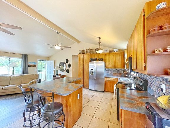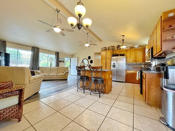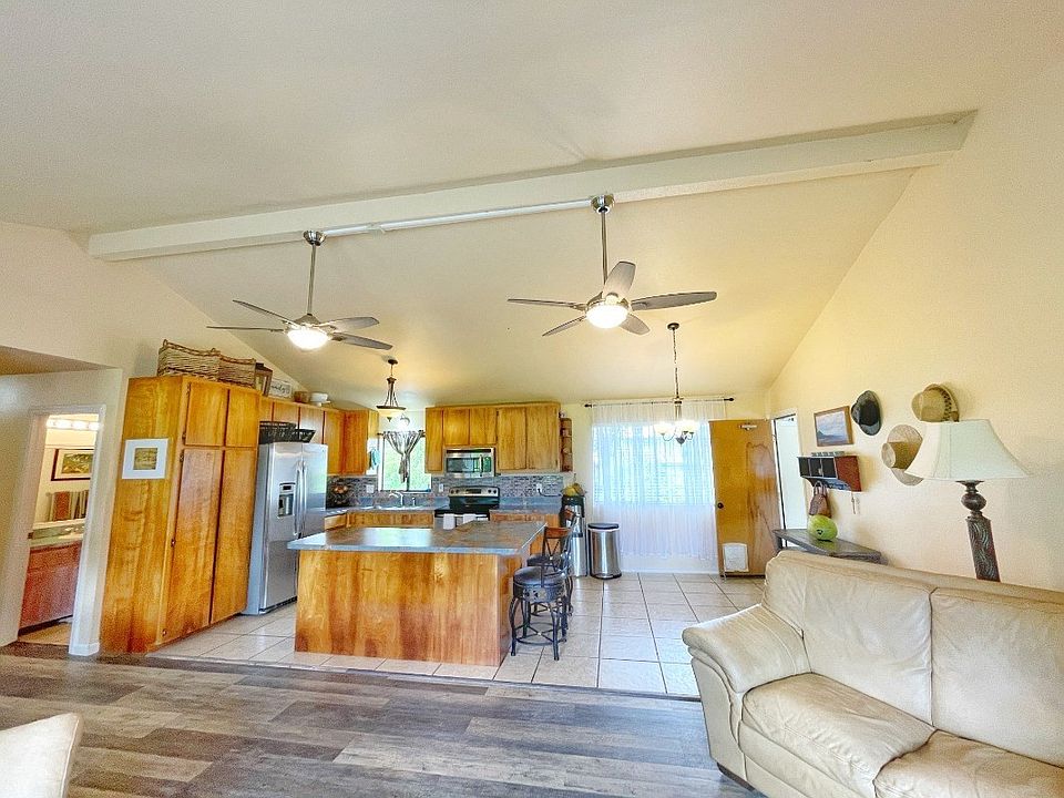 Charming and well maintained home in beautiful Waimea! This home offers privacy in its spacious surroundings and mature landscaping. Most everything has been refreshed by the current owner; Remodeled bathrooms, laminate flooring, and fresh paint make this home ready for a new owner. High vaulted ceilings and open concept living area, create a very spacious feeling. Three bedrooms and two bathrooms, are separated from garage by the living room and kitchen. Every window offers sights of green lawns and luscious landscape. This home is set back off of the road and to the very back of the property, making it feel much larger than a 10,000 sf lot. Views of the rolling green Waimea hills from the back yard. Grassy, level, and fully fenced lot provides tons of usable yard space. Mature citrus, deep soil, as well as some garden beds, a green thumb delight! Just 5 minutes to Waimea town.