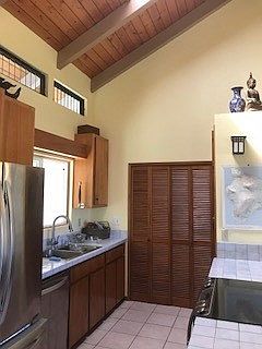 Beach cottage a mere 200 feet from the beach access! Open, spacious and family oriented with the split floor plan. Beautiful yard with tropical fruits.