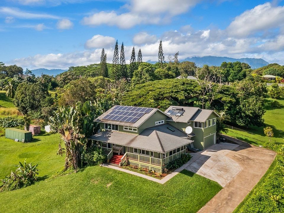 Spoil yourself with this gorgeous home in a Private Country setting on over 3 acres in Wailua Homesteads. Tons of fruit trees and a beautiful tropical landscaping. UPGRADES and FEATURES: * 3Bedroom Home PLUS ADDITIONAL Bonus Sitting Room with Double Doors and Large Bonus Room that can be used as an Office or as a Mother in Law Suite with Separate entrance. Also, separate Bonus Pool house currently used as a Studio *1/2 wrap around Lanai *Recently painted inside and outside *Luxury Vinyl Flooring *High Ceilings *Split AC System in all bedrooms and living room *Lots of windows to let the light in *Gorgeous Open Kitchen with Skylight *Beautiful Waterfall Island with Quartz Countertop in the kitchen with deep sink *Energy efficient with Propane Stove, Solar Water heating and a 5 KW PV System (owned) with Tesla Battery *Stainless Steel appliances and DeWils cabinets, New Refrigerator *Tranquil Waterfall Feature outside dining / kitchen area *Bonus sitting room upstairs, great for office or guest room *Gorgeous Sleeping Giant Views from the Master Bedroom *Master Bathroom with large walk in closet and Laundry chute *480 sf Office space or Guest Room with Separate entrance above Garage with window AC and Full bathroom (office space plumbed for sink or wet bar) *Additional Pool House used as a Studio. has separate solar for hot water *Gorgeous private setting with tons of fruit trees including but not limited to Coconut, grapefruit, Avocado, mountain apple, Weleweka plant, Citrus, Puakenikeni, Night Blooming Jasmine and Gardenia *Guest House Rights per CPR documents, if permitted by the applicable building codes and zoning ordinances. Buyer to do due diligence regarding guest house right possibility *Stream at the bottom of property line Please do not go down long driveway without an appt.