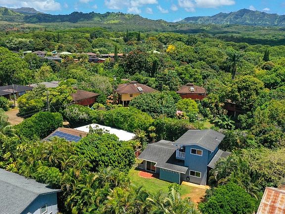 Enjoy this charming 2 bedroom, 2 bathroom home in Kapaa! The property has a gated entrance for privacy, surrounded by lush greenery. The loft bedroom lanai provides beautiful mountain views of Waialeale and Makaleha. The total square footage including the screened-in lanai, loft bedroom, workshop, and carport is approximately 1,944 square feet. Many upgrades have been completed with the home including but not limited to: *Freshly painted interior and exterior *New kitchen cabinets, cypress floating shelves, and acacia countertops *Bathroom renovations *Mini wet bar *Custom shelving throughout Professional photos to follow soon!