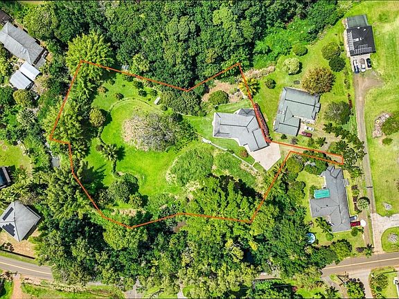 This Quaint Home is the Perfect Place to Create Memories with Your Loved Ones! Located in the heart of Wailua, this 2 bedroom/2 bath home is on 2.5 acres of fairly level land, surrounded by the Opaekaa Stream on three sides of the property. The house is surrounded by a wraparound lanai perfect for your leisurely days at home. The house, with its beautiful cathedral ceilings, feels larger than it is and is the perfect blank canvas to make all your own. Situated on the raised part of the property away from the stream, you are also surrounded by many varieties of fruit trees to satisfy all your senses and create a serene environment. An extensive map and list of the trees on the property is included in the photos of the listing. The property is partially fenced for horses, verify with County of Kauai that horses are still allowed. The home is also located close to Lydgate and Kealia Beaches, the amazing hikes of Sleeping Giant and Makaleha, and the Wailua Homesteads Park and Dog Park and the world famous Hindu Monastery and Himalayan Academy. Coconut Marketplace, the Kapaa Bike Path, and plenty of restaurants and grocery shopping are a short drive away. Don't miss out on owning this sweet piece of paradise!