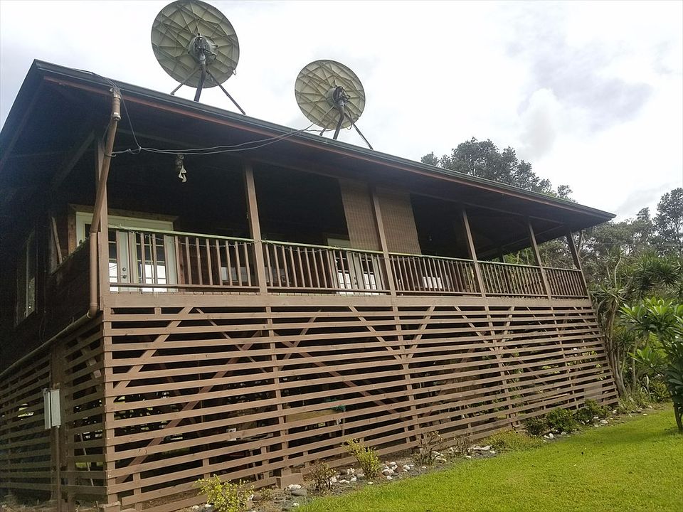 Large ranch style home on ten acres with a large covered lanai to enjoy the serene beauty in a very quiet setting. Redwood siding home on post & pier surrounded by tropical flora and fauna. Spacious living room/dining room area with a wood fireplace and hardwood floors. High cathedral ceilings and a ladder that leads to the Loft. This 2 bedrooms/2bath home has underground electricity and water catchment tank (missing cover) utilities, cable or satellite are your options for tv, landline and internet. Wireless service works well. On the grounds there is approximately four acres of mature macadamia nut orchard. There is also a variety of other fruit trees on the property; bananas, papaya, avocado, citrus and the remaining acreage has been cleared and is ready for your imagination. The entire ten acres is fenced and gated. There is also a garden shed for tools and equipment. Approximately at 2,300' elevation in lava zone 6 - great for financing. CPR Alala on Lorenzo Homestead Rd.