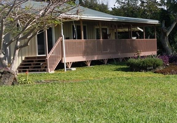 Wonderful ocean and Mauna Loa views in a peaceful tranquil setting. Acreage has plenty of room to expand or for more planting. Fantastic 1008 sq ft work shop/garage. Lots of flowers,fruit ,shade, and flowering trees including Jacaranda, Royal Poinciana, and Mock Orange. Deep soil that is perfect for gardening. Beautiful terraced gardens with raised beds. Driveway is grass. Number of bedrooms does not match county records - one bedroom currently in use as den/office. Square footage of home is from original plans and does not match county records.