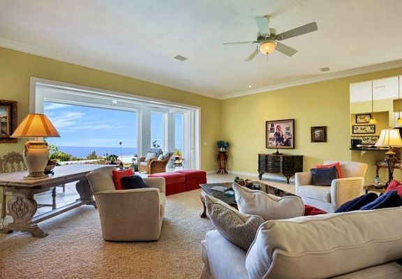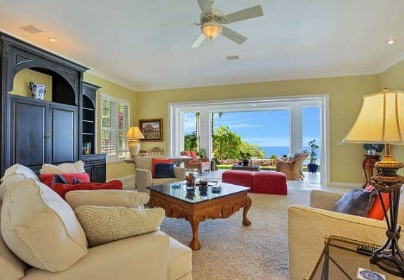 Seller will look at all reasonable offers. Elegant home featuring beautiful ocean views, infinity pool, and tropical landscaping. Enter the home through French doors to a grand entry way. Spacious living area with pocket doors to the large lanai extending the living/entertaining area. The partition between the living room and the dining area hosts a see-through fireplace. Kitchen is large and functional with plenty of storage. Granite counter tops, a 5 burner gas range, and wonderful ocean views are some of the features. The master suite is located on this level. Grand and bright, it too has a see-through fireplace leading to the master bath which hosts his and hers areas plus a fabulous soaking tub. Second level has two bedrooms plus bath all with an ocean or garden views. Separate laundry room adjacent to the over sized 2 car garage. This home has tons of storage. Meander down the path to the guest home. Split into two pods connected with the lanai. One pod consists of one large bedroom with bath and walk in closet. Second pod is the living room, laundry room, and half bath. Ocean and garden views from both pods. Enjoy coffee from your own trees grown on the property. Kaloko Mauka is a wonderful community. One can be as private as they desire or get involved with the community - your choice!