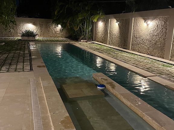Incluye una piscina tipo lap con baja shelf, patio ajardinado y sistemas completos de respaldo: