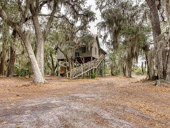 Nestled in an Oak grove on the marshes edge of Hird Island, enjoy 1.63 acres of privacy and "off the grid" living! Accessible by a 15 min boat ride or fly in to the private airstrip. The main house features 2 bed/2 full baths (918sqft) with an open kitchen/living area and fireplace. The ceilings are pecky cypress with heart pine flooring throughout! Dine in the treetops on the large screened in porch with marsh views looking towards Sapelo Island. Allow your guests privacy with the separate bunk house (512sqft). Workshop below and tons of storage. 2 diesel generators and a 600 gallon tank will have you living comfortably even if the power goes out. Fenced in orchard on a self watering system. Golf cart ready to explore the island and visit with neighbors. Excellent fishing and eco-touring directly outside of your front door! Only a 5-mile boat ride to the pristine beaches of Sapelo Island and Doboy Sound. Hird Island offers a unique Coastal Georgia living experience. Community dockage.