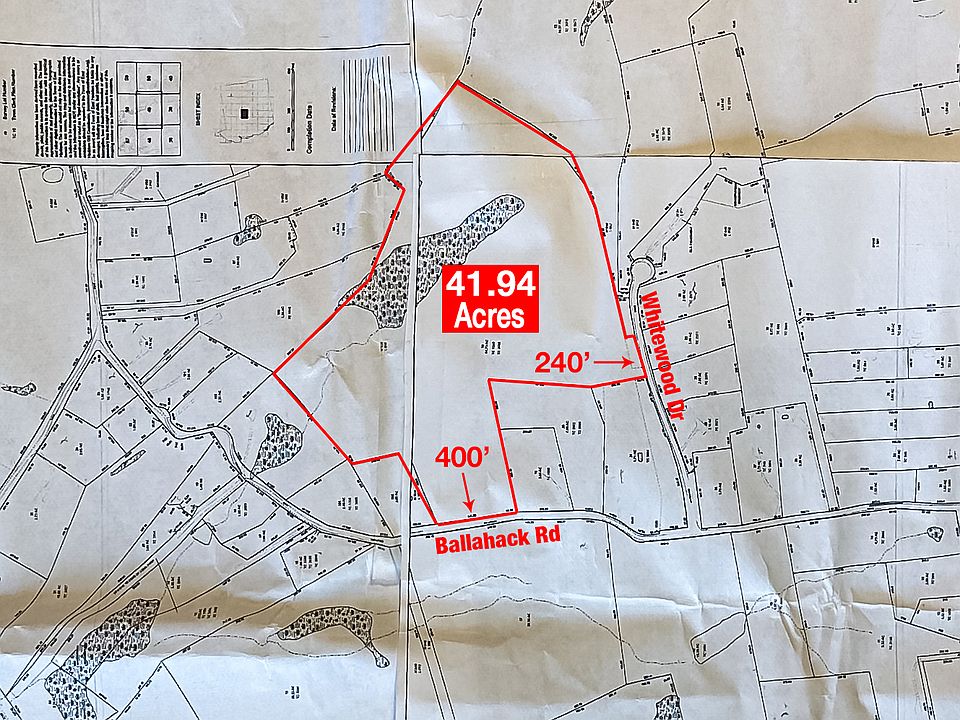 LOCATION LOCATION LOCATION!!! Build your dream home or subdivide and build a couple homes! Large parcel just under 42 Acres in the heart of East Haddam Bashan Lake District. This large residential land parcel fronts on two separate roads making it an ideal lot to split into two. With approximately 400' on Ballahack Rd and 240' on Whitewood Drive you have options to develop. Bashan lake boat launch is right down the road with other attractions close by such as Gillette's Castle, Devils Hopyard State Park, Golf, Goodspeed Opera House and so much more.