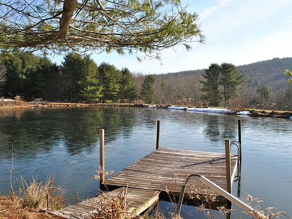 Cabin on 107 acres in Richford NY, Tioga County. If you're looking for prime hunting property this is where you look first. The owner has been very selective in harvesting deer over the years which has resulted in trophy whitetail in the population. I saw a flock of turkey on my first visit to the property. The location and set back of the cabin gives it the isolated feel, but you are only 14 miles from Ithaca and under 3 and a half hours from NYC. The cabin is approximately 850 square feet with a detached 280 square feet bunk room. The cabin has one bathroom, full kitchen/dining area, bunk room and den. There is a water supply, septic, and electric to the remotely set cabin. The cabin overlooks a professionally completed trout stocked pond with terrific views. There is a second pond on the top and a running creek at the bottom of the property. The combination of views, water and hunting make this the ideal property for a hunter or someone wanting an isolated vacation spot with fishing, ATV trails, and hunting. Don't let this one pass you by without at least viewing the property! The owner is willing to finance the purchase with negotiable terms.
