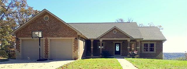 High on a hill stands a custom lodge/home with 1/4 mile Meramec River frontage. High end 5 BR, 3 BA home has huge Anderson windows to enjoy the Million Dollar Views. Open & spacious w/9 ft ceilings. Pine tongue & grove walls/ceilings. Recessed lighting, sold pine doors. Kitchen boasts of hickory cabinets, huge breakfast bar, stainless steel appliances, convection oven, ceramic tile & more. Master suite w/jetted tub, dual sinks, separate shower. High efficiency electric heat with outdoor wood furnace. Excellent insulation & energy efficient. Water softener, alarm system. Walk out lower level w/huge rec/family room, barn tin, wood & radiant heated tiles. 2 more BR's w/sink/frig & bar. Great for guests! 2 car garage, circle drive. Cross fenced for livestock. Land has a good mix with approx 30 acres of river bottom pasture and 40 acres good timber. Start your own Campground with over 1/4 mile of Meramec River frontage, plus room for RV's, campers. Or just enjoy one of Nature's best.