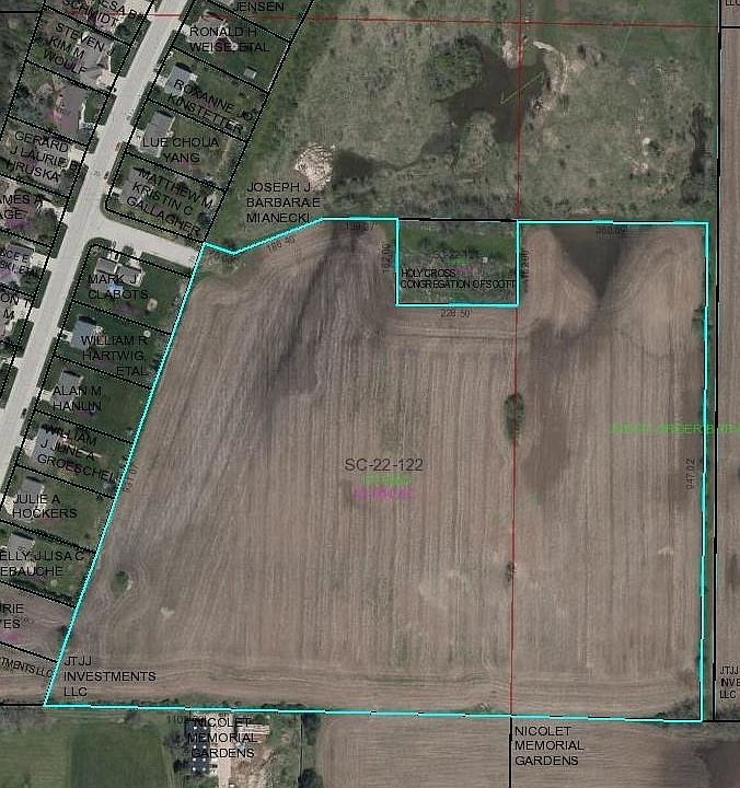 Great property location for future residential development just North of UWGB with quick Highway access. Land is generally level for easy developing and presently being farmed. Town of Scott Zoning map shows land as being zoned residential.