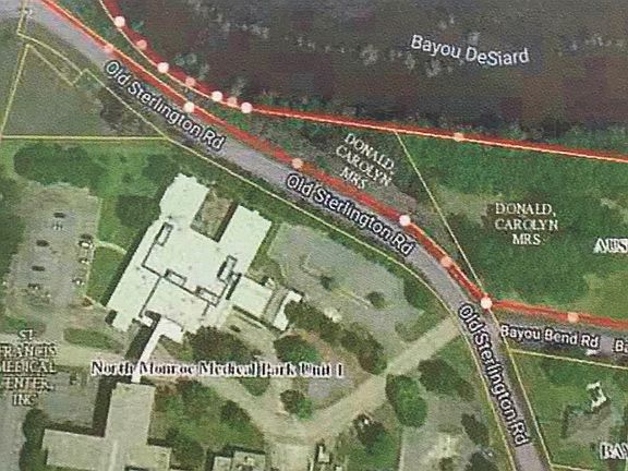 The sliver leading from Old Sterlington Rd. to Bayou Bend lot is sold with the Bayou Bend lot. The sliver is not surveyed and riparian rights have not been surveyed. Gas well will be determined as to ownership and activity. Sellers will transfer what interest they have.