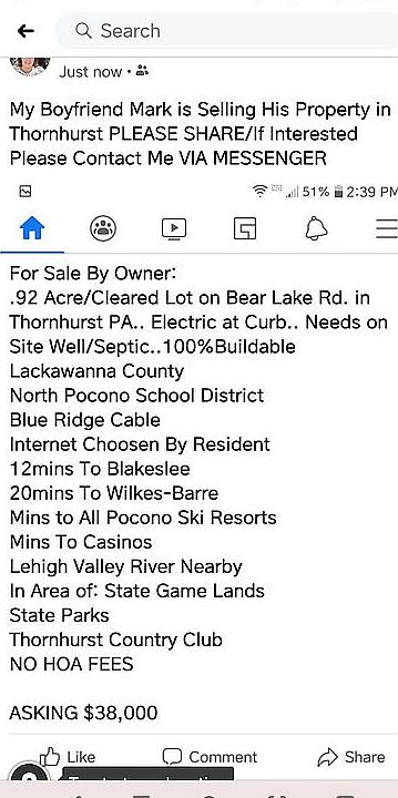 Cleared Lot 100%Buildable.. Electric at Curb.. Needs onsite Well/Septic.. Mins to ALL POCONO RESORTS/Casinos.. Mins to Wilkes-Barre.. Lehigh Valley River Nearby.. Near State Parks/Game Lands.. North Pocono School District.. Thornhurst Country Club.. NO HOA FEES... Asking Price NEGOTIABLE