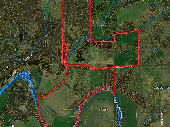 Farm in Wright County for sale with Beaver Creek bordering the west and south side, 3 ponds, 2 springs and 2 seasonal creeks giving you water,water,water! Good quality soil with about 90 Acres m/l bottomland owner has previously planted in corn and other crops in addition to the hayfields and plenty of pasture. There are groves of mature walnut trees, oaks, and many other tall beautiful trees throughout the property. There is also about 65 acres of woods that borders National Forest land for great hunting. The house and all structures are in disrepair and given no value. There is a well by the house and seller knows nothing about the condition of it. This property has been owned by the same family for many years and this is your chance to own a large piece of quality land amongst several beautiful generational farms.