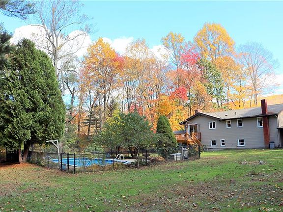 Looking to be self sufficient? Custom built 3-5 bedroom home three bedrooms on main living level, with cathedral ceilings. The land is separated by state forest. Home sits on 1.35 acres with 11.2 additional acres surrounded by state forest. Just a short walk to 11.2 acres can be used for farming or recreation. Just up and across the entrance from 200 acres of trails in Cockaponsett state forest. Beautiful views of pond across street and swimming pool in back with gazebo. Heat with oil and/or wood stove. Two fireplaces, tiled bathrooms, three season tiled sun room, and new flooring in kitchen and downstairs. Freshly painted upstairs. Attached two car garage with large storage room in back. Large established vegetable garden area, untilled this year and peach tree. Enough room on front land for a barn, currently wooded. Back property has running stream. Great for hunting, hiking, or just privacy, yet less than a mile off Route 9 exit, and central to the state for highway commutes. The land surrounded by state forest makes this a rare find.