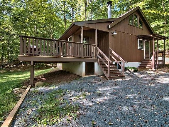 Cozy and sweet chalet that has been renovated to make this a charmer. This home has 2 bedrooms and a sleeping loft that can easily be converted to a master bedroom. The home has a wood burning stove in the living or dining room and a fireplace in the family room. There are many upgrades to this home including granite in the kitchen and trex decking to name a couple. You will have amazing memories in this cute home with your family and friends. The community has a nice lake for fishing and swimming, a shooting-range, hunting and hiking. You are in the woods and in a quiet area yet close to shopping and have great highway access. This home needs to be seen and you will fall in love!