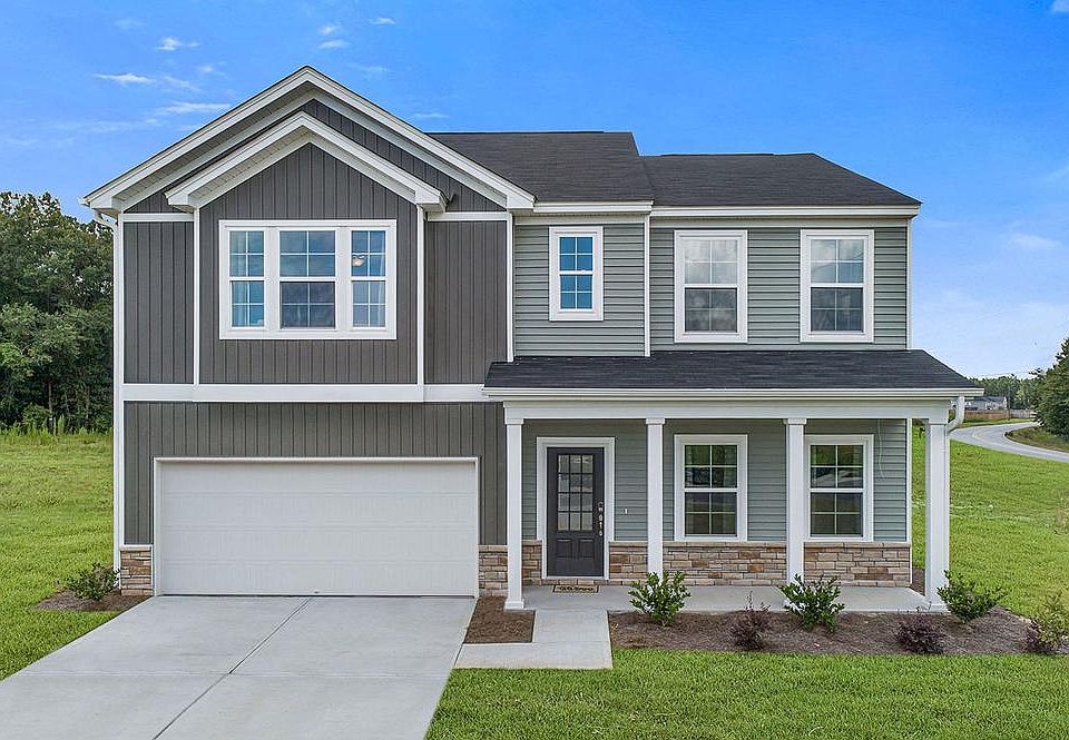 The Russell plan features three bedrooms and two-and-one-half baths with the ability to expand to five bedrooms and four baths. There is an open flex space off of the entry. The kitchen features a large island and pantry and it's open to the eat-in and family room. All bedrooms plus a large open loft are located upstairs. The primary bedroom has dual walk-in closets and the large bathroom features an over-sized linen closet and water closet. Both secondary bedrooms feature walk-in closets and the laundry room is also conveniently located adjacent to the bedrooms. Options include a downstairs guest suite or office, an upstairs guest suite, 4th secondary bedroom and 4th full bath.