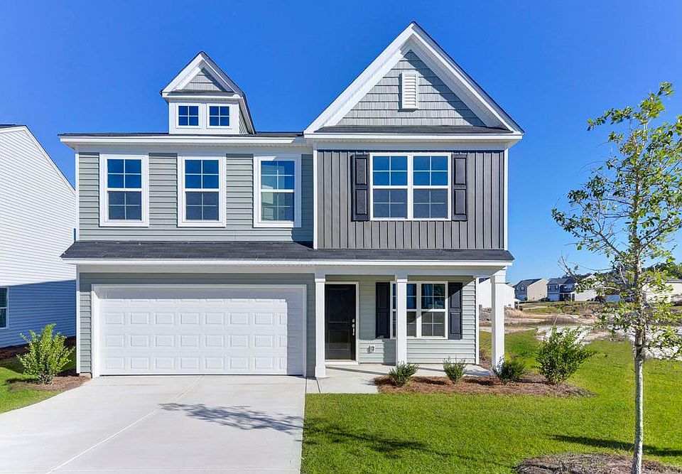 This two-story home has 2.5 bathrooms and up to 5 bedrooms. An open space, which you can convert into an office, dining room, or bedroom, is immediately inside the front door. The kitchen features an island and eating area and leads into the family room, to which you can add a fireplace. A second open space that can become a bedroom is upstairs, along with a laundry room and two spare bedrooms. You have the option to put a boxed ceiling in the primary bedroom and connect its generous walk-in closet to the laundry room.