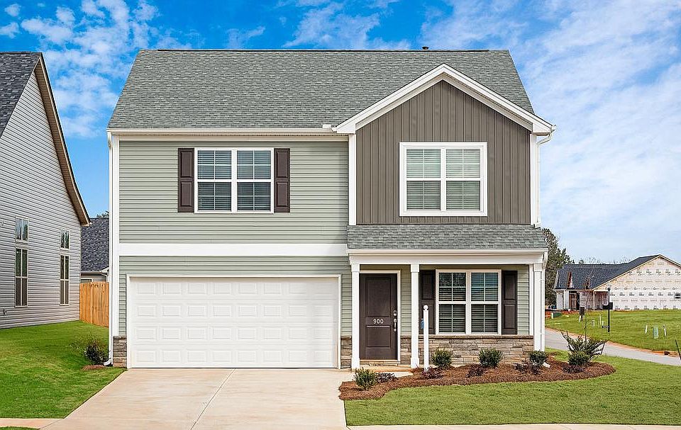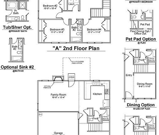 The entryway of this 4 bedroom, 2.5 bathroom home opens onto a flex space that you can turn into a home office or a dining room. Just past it, the kitchen leads to a walk-in pantry and the family room. You can add a fireplace or a covered back porch to the family room. Upstairs, a laundry room and a full bathroom are conveniently located near the three spare bedrooms. The primary bedroom, which can have a vaulted ceiling, is connected to its primary bathroom and walk-in linen and clothes closets.