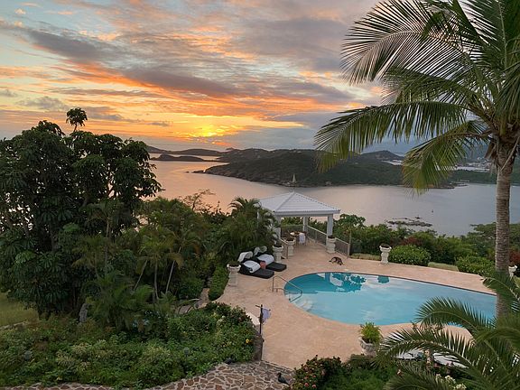 One of the most magnificent properties in the Virgin Islands completely redone after the hurricanes including a 100KW generator, new roofs,electric hurricane shutters, new electrical and air conditioning. Brand new Italian designed furniture and furnishings. Includes a 72 foot Riva. Completely fenced and gated. Stunning town and harbor views. You own the entire top of the hill. Very large two bedroom main villa, separate four bedroom guest house, separate managers quarters, gourmet kitchen, tennis courts, pool, security cameras, pool house, professionally landscaped. Pre qualification letters required before entry.