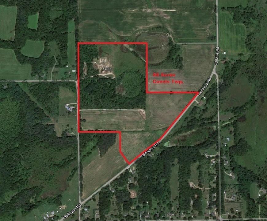 Located several miles South of Bellevue in the heart of big buck Calhoun County, this 67 acres truly has it all. Approx 35+/- acres of tillable ground for income, with the remaining a mixture of hardwoods, low swampy area and a working oil facility. Owner is willing to transfer his mineral rights to the new owner upon acceptable offer, which would provide some extra income along with the tillable ground. Rolling ground with lots of rubs & tracks! I even noticed several apple trees while walking the property! Don't miss out on this income producing, known big buck area property! Crops, if planted before sale, shall be reserved for 2017 harvest season. **Information is not warranted or guaranteed and aerial maps are a picture of the property layout and are not deemed to a survey.