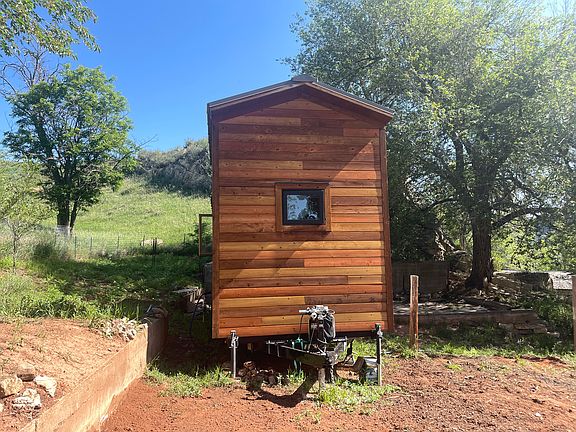 Tiny house bordering Watson Lake and the Poudre River. Private deck and small yard. Sleeping loft. 3/4 bathroom with composting toilet. This house is part of an 8 acre homestead in downtown Bellvue. Very peaceful and picturesque surroundings. Very close to bike path that will take you into and all around Laporte and Fort Collins. Close to Lory State Park and Horsetooth Reservoir. This is country living with easy access to FC. Approximately 30 min bike ride to downtown FC or a 10 min drive.