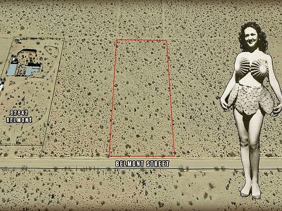 2.496-acre land parcel on Belmont Street in Joshua Tree. This is a perfect residential acreage parcel. Water is along the street (Joshua Basin Water 760-366-8438, buyer please verify) and electric appears to be on parcels to the east and west. Go on out and take a look! To purchase this property on terms from DesertLand, we require a Down Payment of $3400 and a Flat Rate Escrow Fee of $492. So your total start-up cost for the property on Belmont Street is $3892. You can then choose a loan that best fits your budget: 5-year loan ($280 a month), 10-year loan ($169 a month), or a 15-year loan ($134 a month). We conduct a traditional escrow with title insurance. We do not require a credit check. Don't have the down payment? Look into our Down Payment Program. On that program, it is only $374 to start owning this land on Belmont Street today.