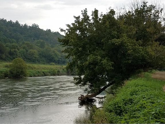 64 acres..Healthy, wide fields front 1000+ ft of the river from its east to west boundaries. These fields are gorgeous & so is the river which is broad & very private. Only two neighbors lay beyond this property on the road which then dead ends. Both are large land owners. The property rises up above a steep rocky bank to over 1500 ft of elevation and then lays out in rolling land up there. Getting the driveway in will be a challenge but likely one worth the trouble for the wonderful views to attain where no one else will see you. A wide expanse, 900 x 1700 +/- shows on the topo as gently rolling from 1500 to 1580 ft. Some thinning has been done but the woods remain. What used to be hay fields & pasture up top now cry out to be beautiful fields again. I hear of a big cave that's up there too!