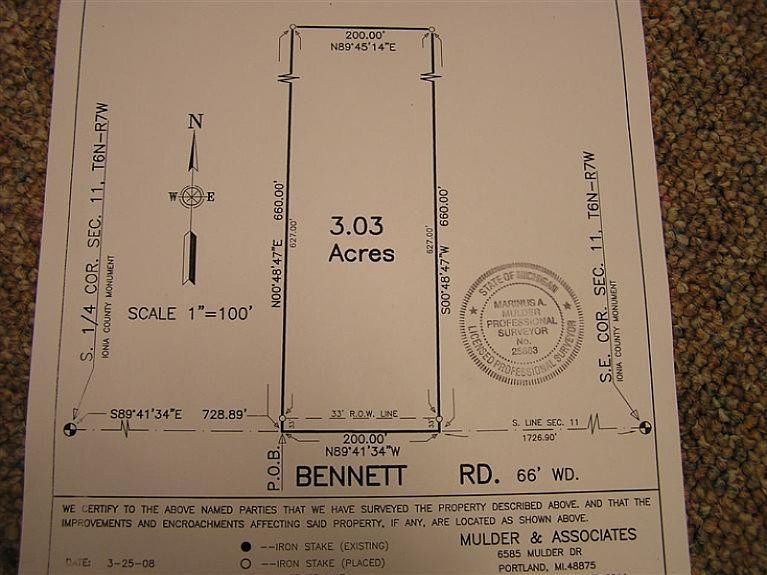A building spot has been cleared. The rest of the land is mature hardwoods. A driveway is in place. The corners of the property are clearly marked.