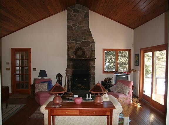SECLUSION - BEAUTY - 16 ACRESBROOK - PONDLong private lane leads to this very special cedar hideaway overlooking spring-fed pond and roaring brook.Offers 3 bdrms, 2 ba, mstr bdrm ste w/ stone frpl & oversized tub, liv rm w/ stone frpl & cedar cathedral ceilings, oak/hw & terra cotta/brick floors throughout. Covered & screened in porches overlook numerous types of flower gardens & more!, Beds Description: Primary1st, Baths: 2 Bath Lev 1, Eating Area: Modern KT, Beds Description: 2+Bed1st
