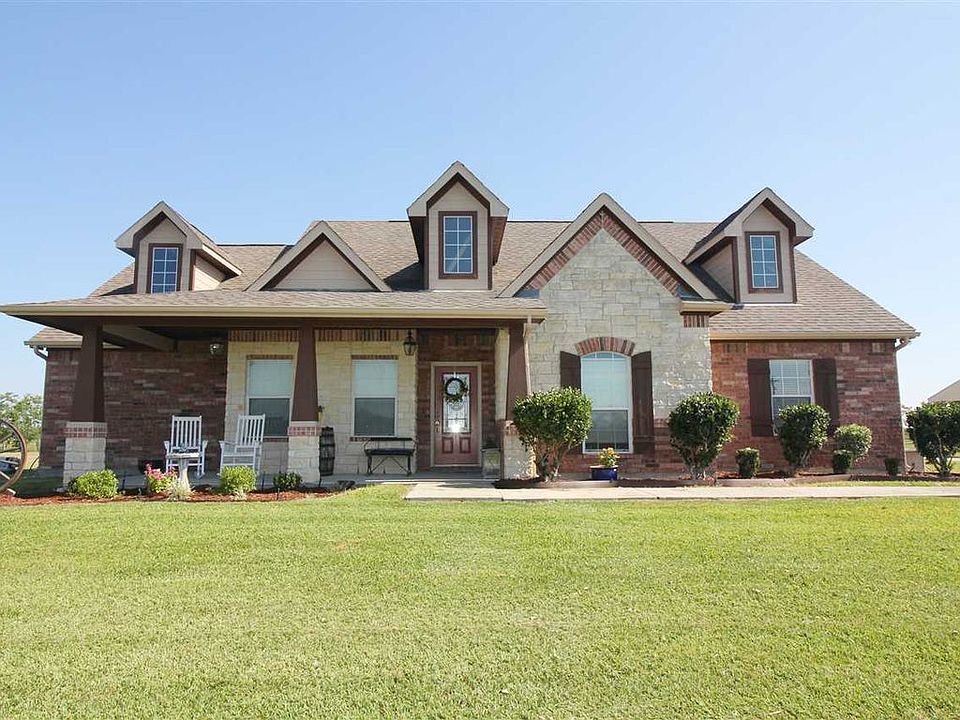 Beautiful Home sits on 10 Acres, 10 year young home. Walk into an open area with tile floors and wood burning fireplace. Kitchen has it all! Granite counter tops, center island, glass top stove, dishwasher, microwave and pantry with inside laundry room. Five large bedrooms and three full baths. Out side on your large covered back patio with gas burning fireplace, built in grill, three basin wash, island for all your enjoyment, the back yard has a large metal storage unit with extra storage for your tractor and equipment. Walk out to your private pond with deck. Extra covered spaces on side of home.