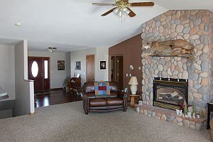 COUNTRY HOME, SHOP & HORSE PASTURE. Spacious country home on paved roads near town featuring an open great room with vaulted ceilings and a stone faced gas fireplace, huge master suite which opens onto a covered patio, attached oversized 2 car garage plus detached 30 x 50 insulated, wired, & heated shop, newly landscaped w/auto undergrd sprinklers, new fencing, 2 horse pastures, new leach field. You'll enjoy country quiet from the covered front porch. All measurments are apporximate.