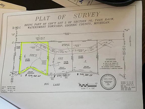 Big Lake - Michigan Bay Cisco Chain: 2.94 acre lot located on Michigan Bay of beautiful Big Lake of the Cisco Chain. This well wooded 2.94 acre parcel offers 393.68 feet shoreline, offers easy access, electricity, adjoins USFS lands to its rear boundary and offers great island views looking across Michigan Bay. Some lowland on parcel. Additional home and vacant lot available.